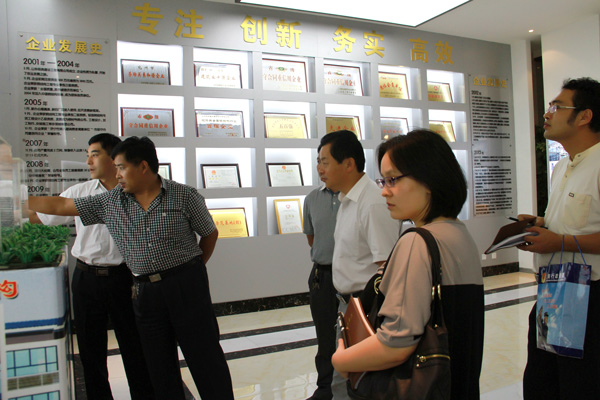 調研團一行不顧勞途奔波,到達公司后,首先參觀了集團公司營銷中心、項目管理中心、集團文化館,在文化館,集團董事長苗樹文簡單介紹了公司的發展歷程、產品結構、行業特性以及公司的現狀,隨后調研團領導深入生產一線,了解車間加工能力、生產進度,具體詢問了員工的工作環境及生活狀況。