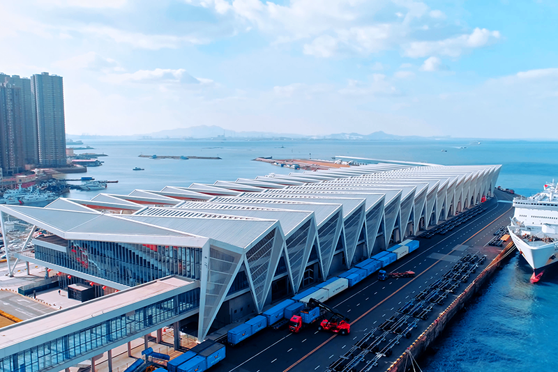 青島紅島站站房設(shè)計(jì)為“一大兩小、中間大兩邊小”的浪花造型,主體為鋼筋混凝土混合框架結(jié)構(gòu),屋面結(jié)構(gòu)為雙向鋼桁架結(jié)構(gòu),落客平臺(tái)單向預(yù)應(yīng)力鋼筋混凝土梁板結(jié)構(gòu),站臺(tái)雨棚為無(wú)站臺(tái)柱大跨鋼框架結(jié)構(gòu)。 總用鋼量將達(dá)4.2萬(wàn)噸,最大鋼結(jié)構(gòu)跨度長(zhǎng)約62米,通過(guò)分段拼裝完成。