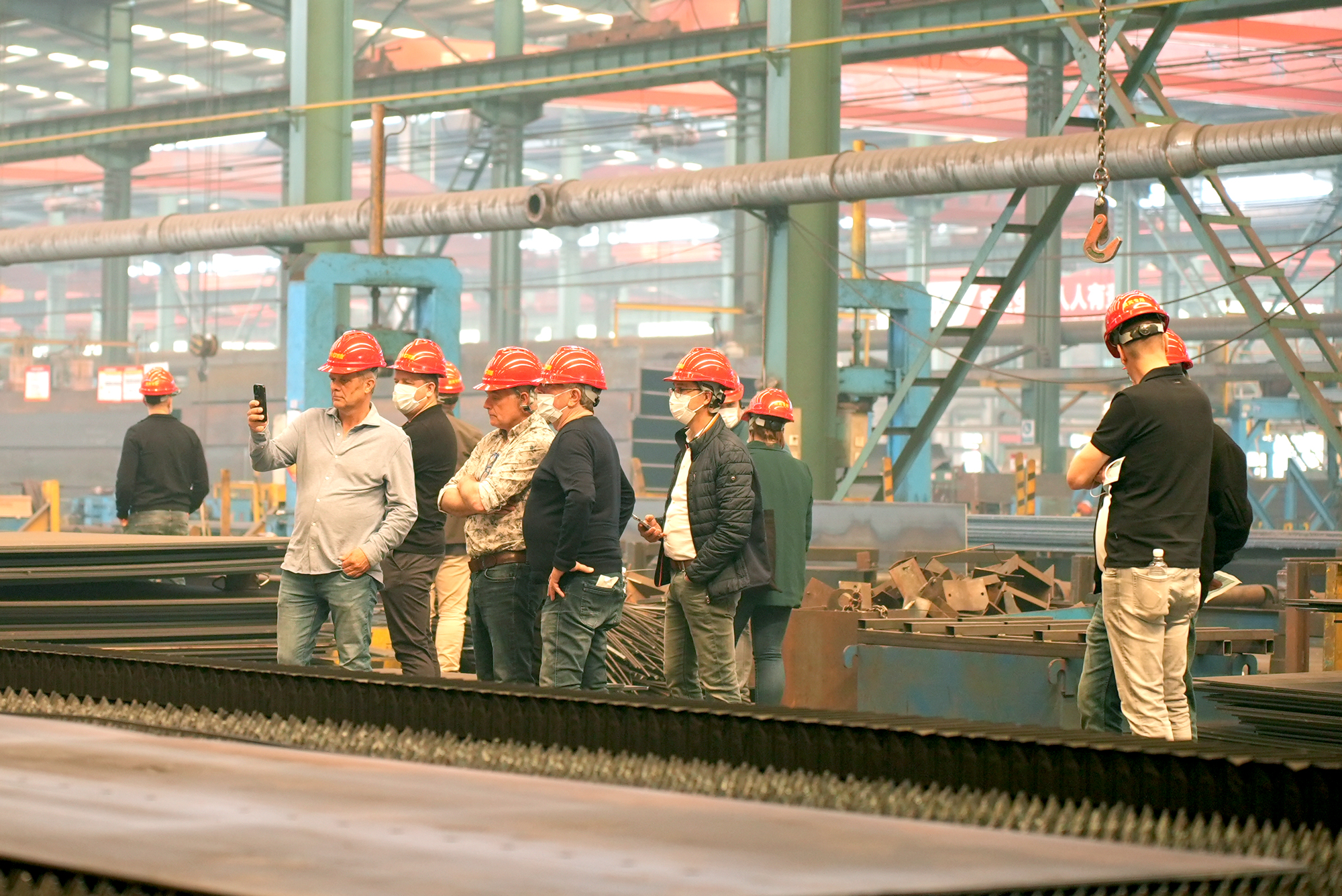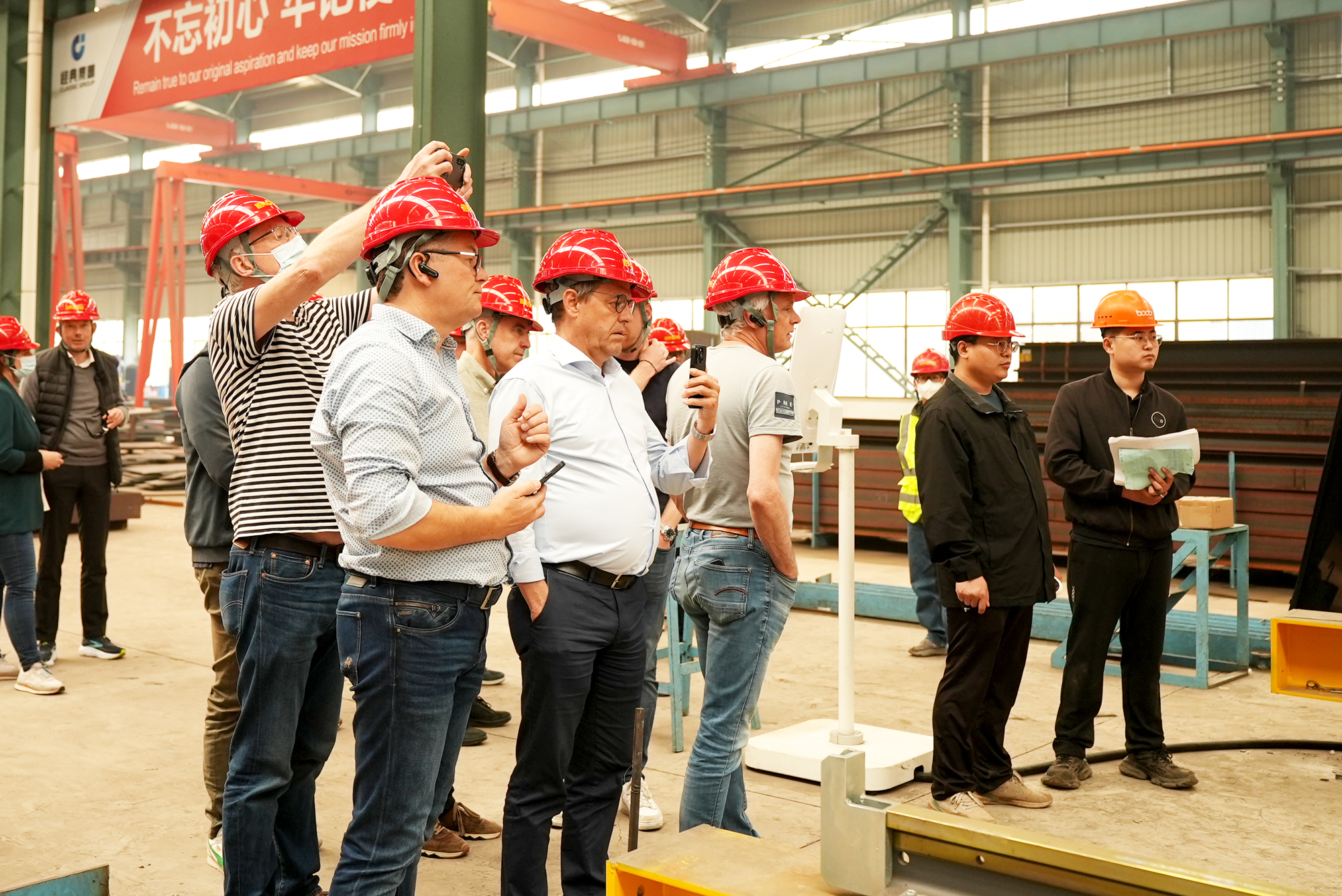 在數字化生產車間,考察團對經典集團在數字化轉型與綠色鋼結構領域的持續探索給予高度認可,并重點考察了企業在高精度深加工、重鋼構件焊接、產品包裝運輸以及質量控制體系方面的實力。