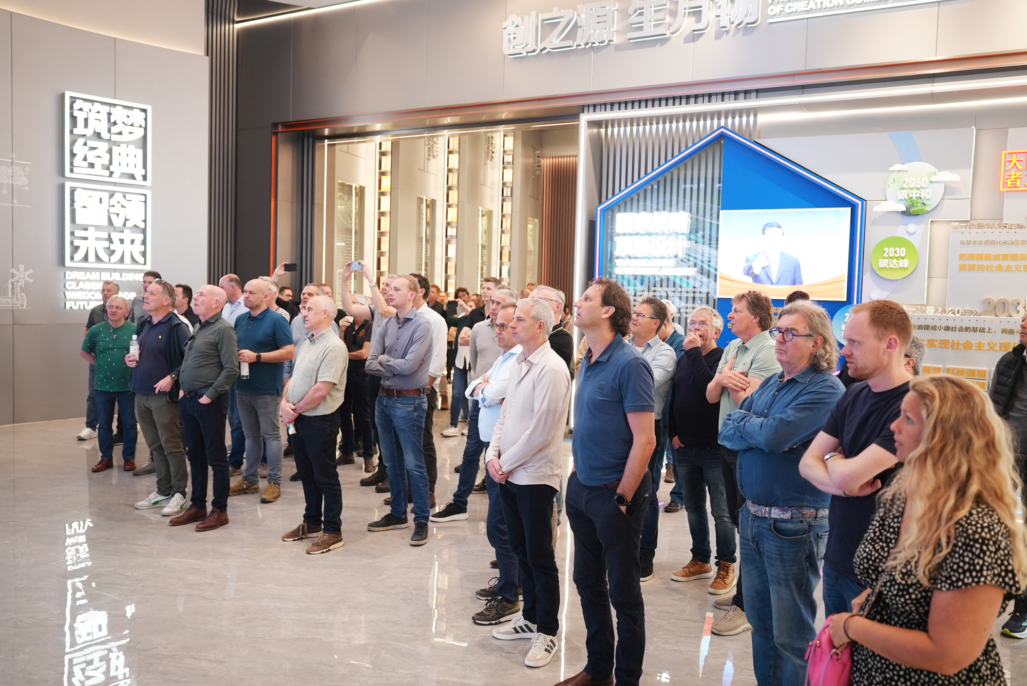 考察團實地參觀了經典數字化文化展館。展館記錄了經典集團從創業初期到獲評“國家制造業單項冠軍”的發展歷程。透過展出的獎牌與獎杯,考察團成員了解了企業的發展戰略、經營理念及國際化產業布局。當了解到經典集團參建了北京大興機場、海南商業衛星發射塔、天津117大廈等國家重點工程,且業務已拓展至全球60多個國家和地區時,考察團成員紛紛表示認可與贊賞。
