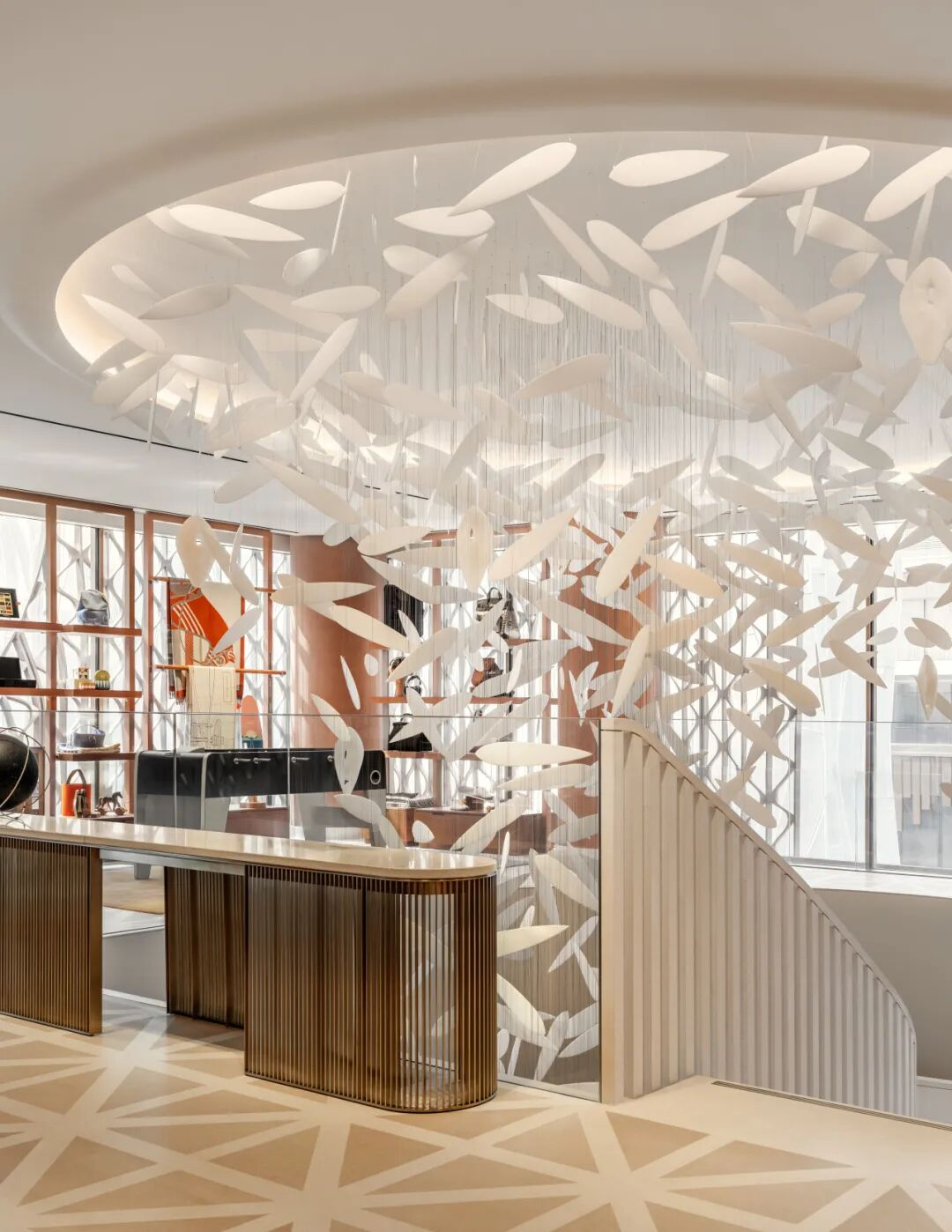 這份精神共鳴,正是經典集團與愛馬仕攜手的核心基石。經典集團自創立以來,秉持“經世致用,典行天下”的價值理念,將“精工致善”的工匠精神貫穿每一項工程的全過程,與愛馬仕“打造經得起時光考驗的作品”的理念高度契合。從外立面玫瑰粉與赤褐色瓷磚的精準鋪貼,到室內空間光影與材質的細膩呼應;從中央石質樓梯的精密澆筑,到每一處紋樣的完整還原,經典集團將設計圖紙上的美學構想,精準轉化為可觸摸、可感知的建筑實景,讓建筑本身成為工匠精神的空間延伸。